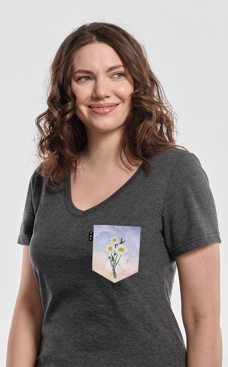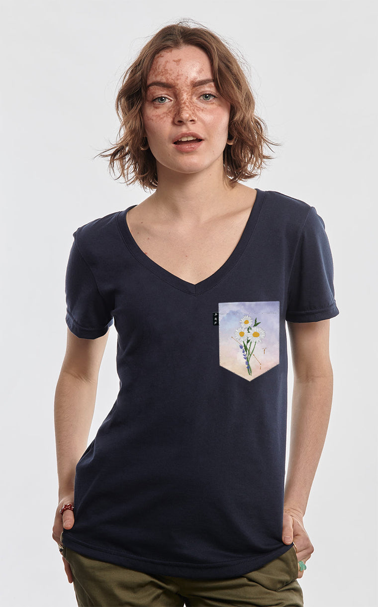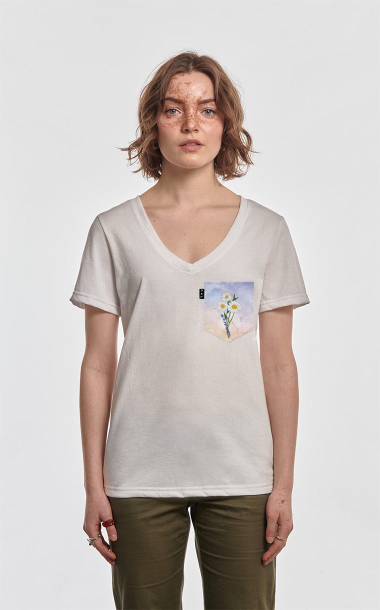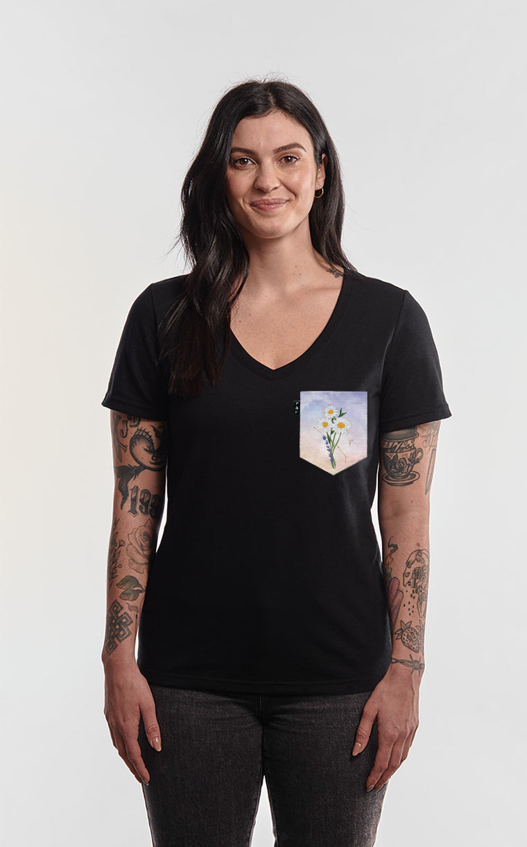 Women's V-neck pocket t-shirt with a semi-fitted cut. V-neck for intimates.