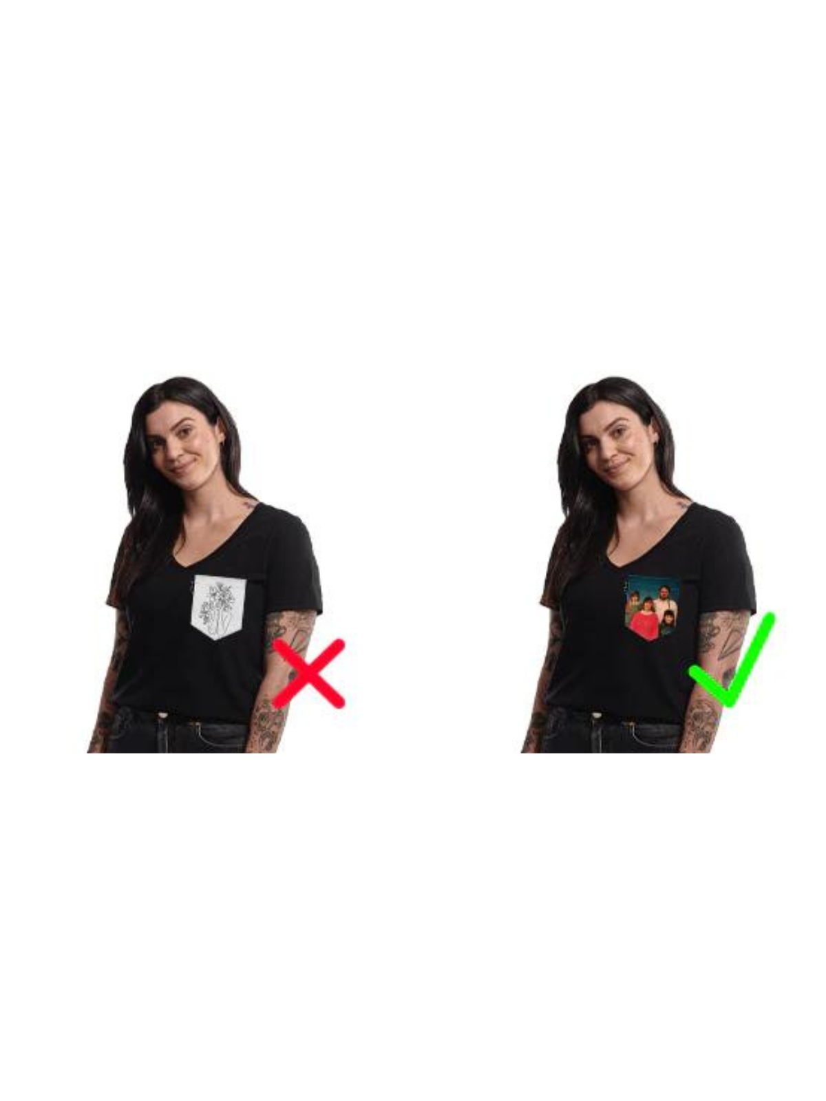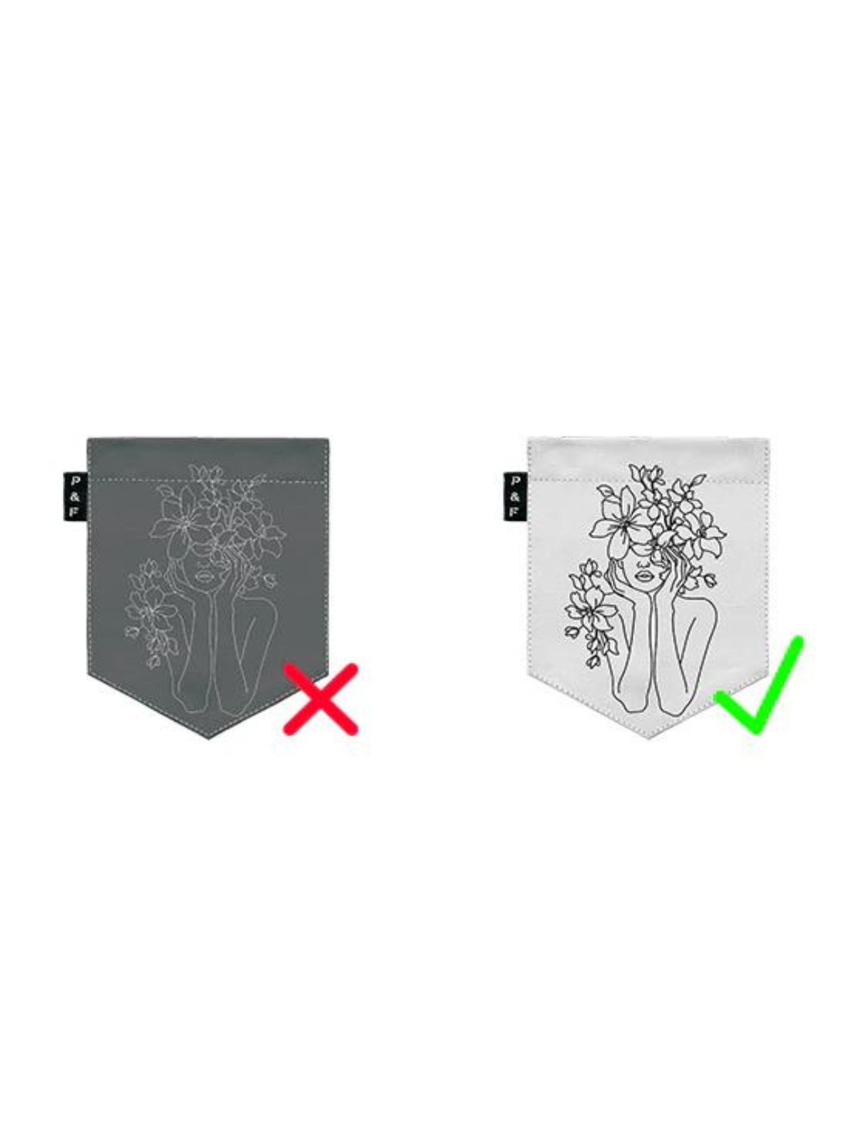 Éviter les fonds ‘’blanc’’ sur des t-shirts foncés (Notre tissu n’est pas 100% opaque, c’est comme du papier de toilettes, les doigts paraissent en dessous).