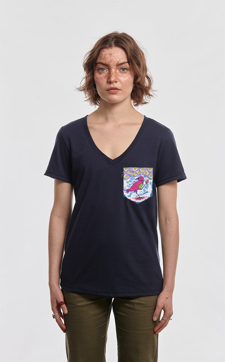 T-shirt à poche col en V pour femme coupe semi-ajustée. V-Cou pour les intimes.